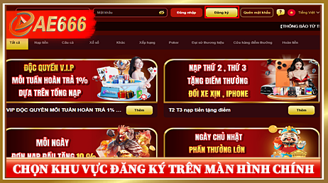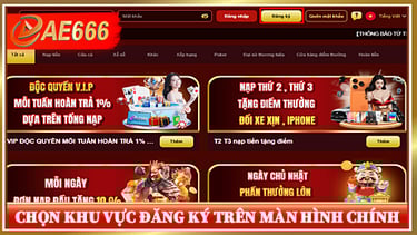 Chọn khu vực đăng ký trên giao diện nhà cái